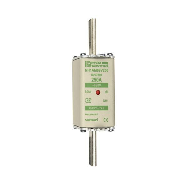 | Kurzbeschreibung | Sicherungseinsatz NH aM Gr.1 AC690V 250A mit spannungsführenden Grifflaschen sfü und Doppelkennmelder |