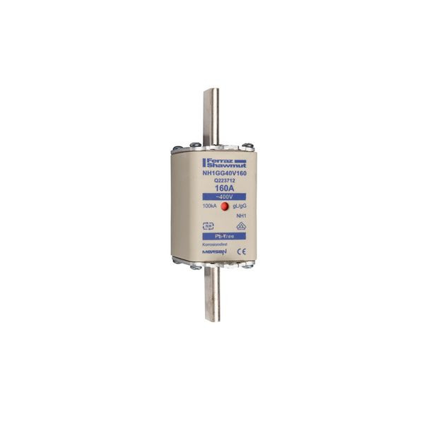 | Kurzbeschreibung | Sicherungseinsatz NH gG Gr.1 AC400V 160A mit spannungsführenden Grifflaschen sfü und Doppelkennmelder |