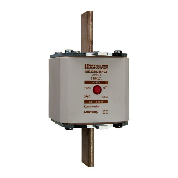 | Kurzbeschreibung | Sicherungseinsatz NH gTr Gr.3 AC400V 315kVA 455A mit spannungsführenden Grifflaschen sfü und Mittenkennmelder |