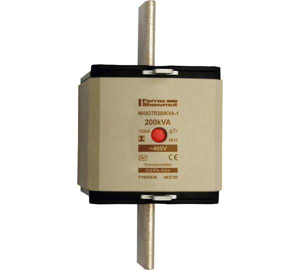 | Kurzbeschreibung | Sicherungseinsatz NH gTr Gr.3 AC400V 400kVA 577A mit spannungsfreien Grifflaschen SGL und Mittenkennmelder |