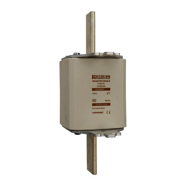 | Kurzbeschreibung | Sicherungseinsatz NH gTr Gr.4a AC400V 315kVA mit spannungsführenden Grifflaschen sfü und Stirnkennmelder |