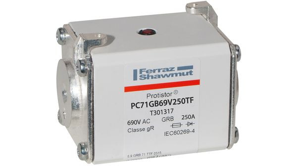 Mersen Protistor Sicherungseinsätze 690V für den Halbleiterschutz berücksichtigen ein breites Maß an Flexibilität bei der Anwendung zum Schutz von modernen Stromrichtergeräten. Protistor Sicherungseinsätze in verschiedenen Baugrößen und zahlreichen Nennströmen ermöglichen eine weitestgehende Geräteanpassung. Protistor Sicherungseinsätze der Betriebsklasse gR wurden entwickelt um eine Absicherung des gesamten Spannungsspektrums zu ermöglichen, Überlasten zu unterdrücken und Kurzschlussfehler zu verhindern. Die Sicherungen enthalten, in Sand fest eingebettet, Schmelzleiter aus reinem Silber, um sehr gute Gesamtabschaltintegrale (I2t) und hohe Schaltvermögen zu gewährleisten. Die Kontaktoberflächen sind versilbert und alle Bauteile nichtmagnetisch. Es gibt bei allen Sicherungen dieser Reihe einen Funktionsmelder, der neben seiner visuellen Anzeigefunktion auch dazu benutzt werden kann, mittels eines zusätzlichen Mikroschalters die Sicherungsfunktion fern zu melden.