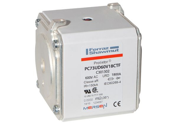 | Kurzbeschreibung | Sicherungseinsatz aR Größe 73 IEC AC600V UL AC650V 1800A TTF mit Gewindeanschluss M12 und Schlagbolzen |