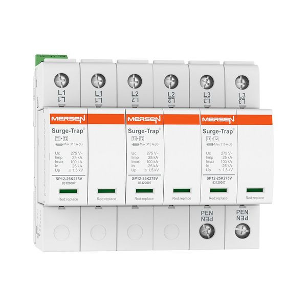 STP T12 25 ist eine Reihe von Typ 1+2/Klasse I+II Kombi-Ableitern für die Ableitung von Blitzströmen und den Schutz vor Spannungsspitzen, entsprechend EN/IEC 61643-11. Geeignet für die erste Schutzstufe in der Hauptschalttafel und Bereiche, die im Freien liegen und in denen die Anlagen üblicherweise mit einem externen Blitzschutzsystem ausgestattet sind.