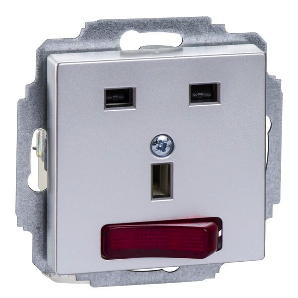 Erhöhter Berührungsschutz gemäß BS 1363. Mit Schalter und Kontrollampe. Passend in eine 60er-Einbaudose. Material Thermoplast edelmatt. Farbe aluminium.