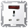Erhöhter Berührungsschutz gemäß BS 1363. Mit Schalter und Kontrollampe. Passend in eine 60er-Einbaudose. Material Thermoplast brillant, antibakteriell. Glatte und selbstdesinfizierende Oberfläche mit antibakterieller Wirkung. Farbe ähnlich RAL 9016. Farbe aktivweiß glänzend.