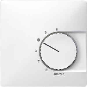 Besonders flache Bauform. Zu komplettieren mit Raumtemperaturregler-Einsatz mit Wechselkontakt 536400/01. Raumtemperaturregler-Einsatz MEG5773-0000. Material Thermoplast brillant. Farbe polarweiß.