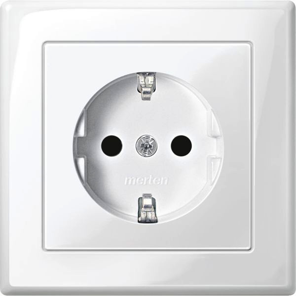 | Kurzbeschreibung | SCHUKO-Steckdose mit voller Abdeckplatte, erhöhter Berührungsschutz, Steckklemmen, polarweiß glänzend, M-SMART |