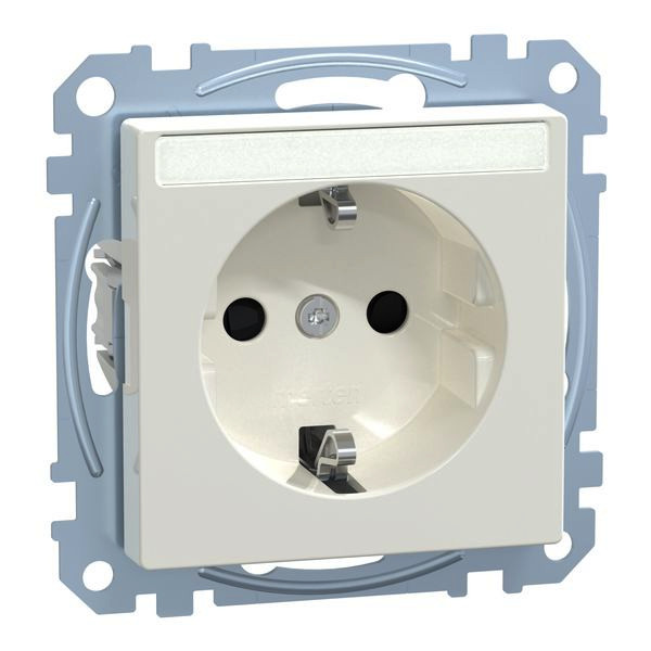 | Kurzbeschreibung | SCHUKO-Steckdose mit Schriftfeld, Berührungsschutz, Steckklemmen, polarweiß glänzend, System M |