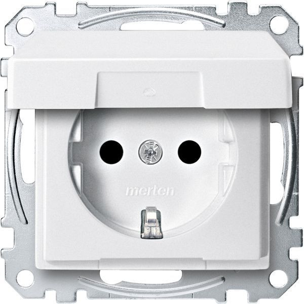 | Kurzbeschreibung | SCHUKO-Steckdose mit Klappdeckel, Berührungsschutz, Steckklemmen, polarweiß, System M |