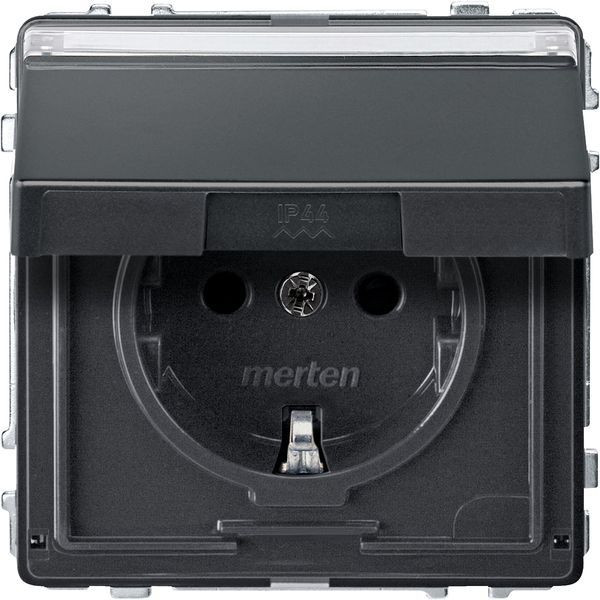 | Kurzbeschreibung | SCHUKO-Steckdose mit Klappdeckel und Schriftfeld, Berührungsschutz, Steckklemmen, anthrazit, AQUADESIGN |