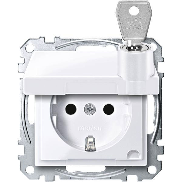 | Kurzbeschreibung | SCHUKO-Steckdose, Klappdeckel, abschließbar, verschiedene Schließungen, BRS, Steckklemmen, aktivweiß glänzend,System M |