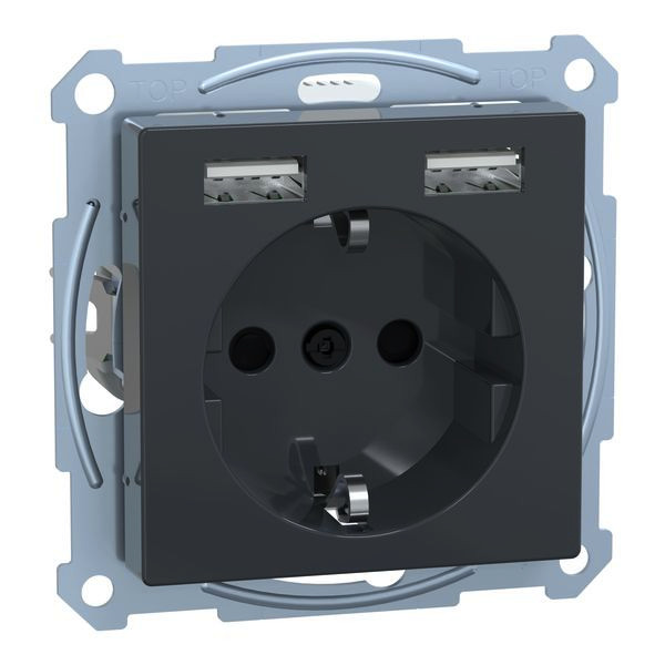 | Kurzbeschreibung | Schuko Steckdose mit USB Ladegerät Anthrazit System M |
