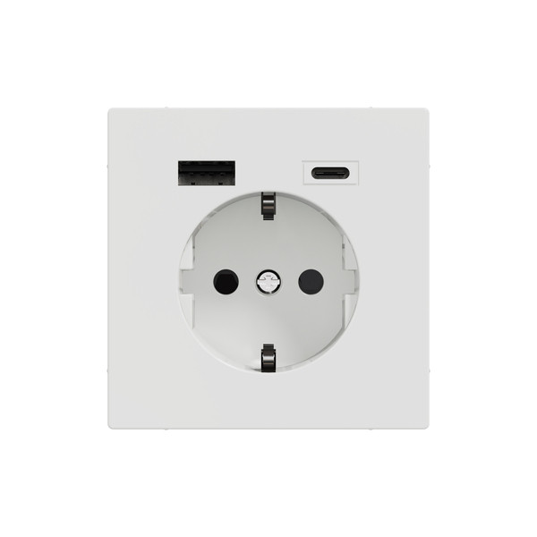 SCHUKO Steckdose mit USB-Ladegerät Typ A und Typ C / 3,0 A, Integrierter erhöhter Berührungsschutz gemäß VDE 0620 Teil 1 (Kinderschutz), erwartete Lebensdauer: 20.000 Stunden bei Volllast, Steckdose: 16 A, AC 250 V, USB-Ladegerät: Nennspannung: AC 220-250 V, mit Krallen- und Schraubbefestigung