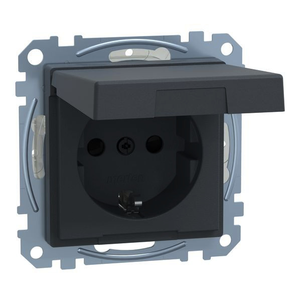 | Kurzbeschreibung | SCHUKO-Steckdose mit Klappdeckel, IP44, Berührungsschutz, Schraub- Liftklemmen, anthrazit, M-SMART |