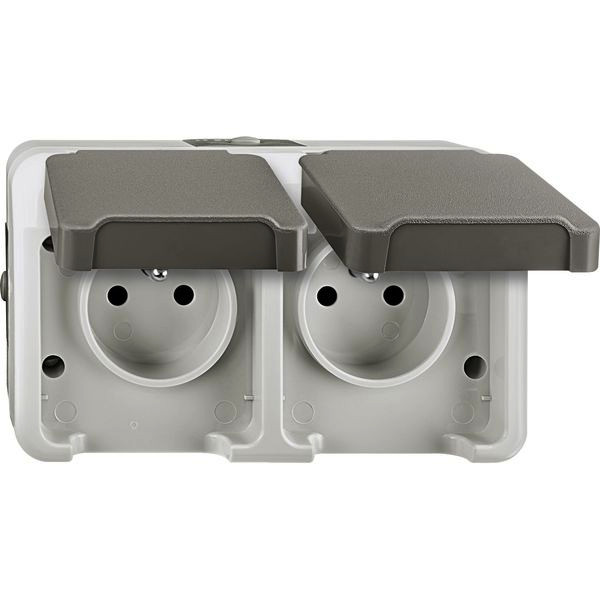 | Kurzbeschreibung | Doppelsteckdose mit Schutzkontaktstift und Berührungsschutz, lichtgrau, AQUASTAR |