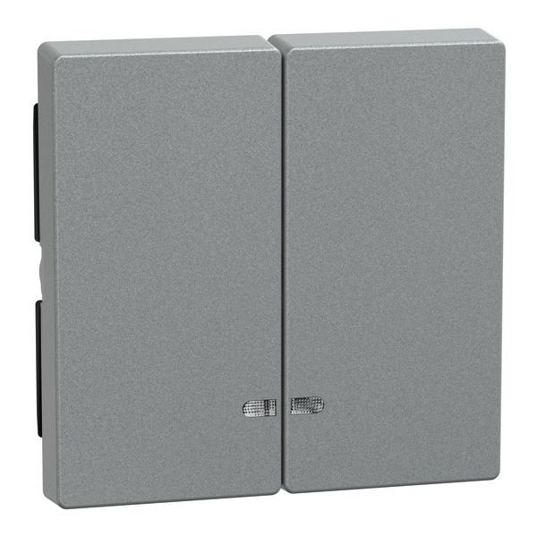Für Serien- und Doppeltaster-Einsatz. Zu komplettieren mit Schalter und Taster, 2-fach. Material Thermoplast edelmatt. Farbe aluminium.