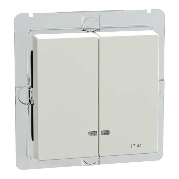 | Kurzbeschreibung | Doppelwippe mit Kontrollfenster IP44, polarweiß glänzend, System M |