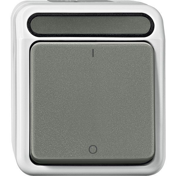 Beleuchtbar. Aufputz-Montage. Mit Schraubklemmen. Schutzart IP 44. Abmessungen ca. 83x73x56 mm. Zubehör Leuchtanhänger für 3-polige Schalter AQUASTAR MEG3902-8000. Schriftfeldeinlagen AQUASTAR MEG3957-8000. Doppeleinführung AQUASTAR MEG3961-80xx Verbindungsstück AQUASTAR MEG3963-80xx Rohreinführung AQUASTAR MEG3964-8029. Kanaleinführung AQUASTAR MEG3965-80xx Schieber mit Stutzen AQUASTAR MEG3962-8029. Farbe lichtgrau.