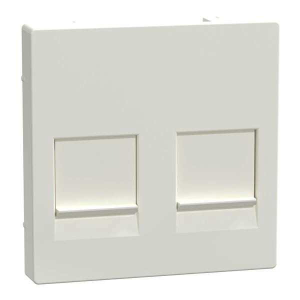 | Kurzbeschreibung | Zentralplatte für Modular Jack 2fach mit Staubschutzschieber, polarweiß glänzend, System M |