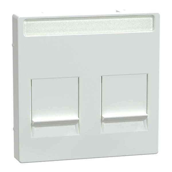 | Kurzbeschreibung | Zentralplatte für Modular Jack 2fach mit Schriftfeld und Staubschutzschieber, aktivweiß glänzend, System M |