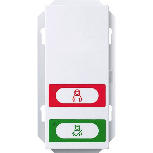 | Kurzbeschreibung | Zimmermodul mit Ruf-/Abstelltaster, aktivweiß glänzend, System M |