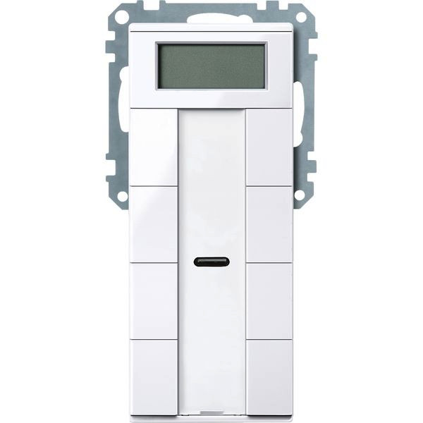 | Kurzbeschreibung | Taster 4fach plus mit Raumtemperaturregler, aktivweiß glänzend, System M |