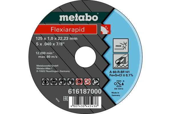 | Kurzbeschreibung | Flexiarapid 125x1,0x22,23 Inox, Trennscheibe, gerade Ausführung (616187000) |
