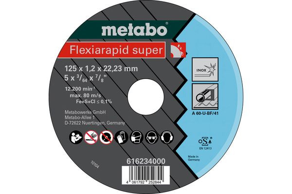 | Kurzbeschreibung | Flexiarapid super 125x1,2x22,23 Inox, Trennscheibe, gerade Ausführung (616234000) |
