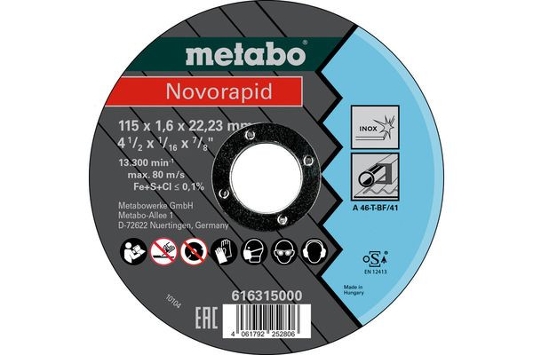 | Kurzbeschreibung | Novorapid 115 x 1,6 x 22,23 mm, Inox, Trennscheibe, gerade Ausführung (616315000) |