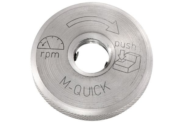 Speziell für Metabo Quick-System zum werkzeuglosen Scheibenwechsel auf Knopfdruck. Passend für alle kleinen Metabo Winkelschleifer mit M-Quick Spindelknopf, außer W 6-115, W 6-125, WB 11-125, erforderlicher Gewindeanschluss M 14