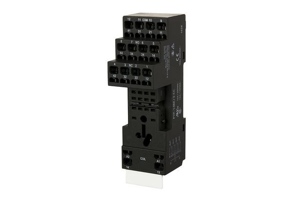 14-polige Relaisfassung mit Federzuganschlüssen für handelsübliche Industrierelais. Alle Metallteile sind gegen großflächige Berührung verdeckt angeordnet. Die Relaisfassung ist passend für Industrierelais MC274. Auf die Steckfassung können optional Elektronikmodule, wie LED- oder RC-Module aufgesteckt werden., Haltebügel optional, integrierte Schnellbefestigung für DIN-Schiene, Klemmenbezeichnung nach EN 50022, getrennter Ein- und Ausgang