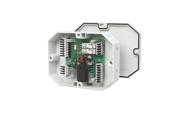 Das Modbus-Modul im IP65-Gehäuse mit 4 digitalen Eingängen und 2 Relaisausgängen mit Handbedienebene wurde für dezentrale Schaltaufgaben entwickelt. Geeignet um z. B. in einem Raum Lichtschalter und Fensterkontakte aufzunehmen und zwei Lichtbänder zu schalten oder als Jalousiesteuerung. Ebenfalls können 2 motorbetriebene Brandschutzklappen gesteuert werden. Hierbei sind die Relaiskontakte durch geeignete lastabhängige Maßnahmen zu schützen. Die Eingänge sind mit potentialfreien Kontakten zu beschalten. Über einen Modbus-Master können die Eingänge und Ausgänge über Standard-Register geschaltet und abgefragt werden. Die Einstellung der Moduladresse, Bitrate und Parität erfolgt über zwei Drehschalter. Bitrate und Parität zusätzlich per Software.