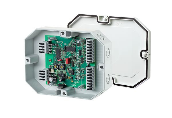 Das Modbus-Modul im IP65-Gehäuse mit 4 einzeln konfigurierbaren Widerstands- oder Spannungseingängen und 2 analogen Ausgängen wurde für dezentrale Aufgaben entwickelt. Die Eingänge sind geeignet zur Erfassung von Widerständen und Spannungen von z. B. passiven und aktiven Temperaturfühlern, elektrischen Lüftungs- und Mischklappen, Ventilstellungen usw. Die Ausgänge sind geeignet als Stellgrößengeber für z. B. elektrische Lüftungs- und Mischklappen, Ventilstellungen usw.Über einen Modbus-Master können die Eingänge mittels Standard-Register universell konfiguriert und die Ausgänge gesetzt werden. Die Einstellung der Moduladresse, Bitrate und Parität erfolgt über zwei Drehschalter oder per Software. Das Modbus-Modul verfügt über zwei integrierte PID Regler, die unter anderem für Raumregelung verwendet werden können. Die Einstellungen der PID Regler erfolgen über die Modbusregister und sind im Modbus Handbuch unter www.metz-connect.com zu finden. Bei Verwendung des Modbus Gateways MR-GW von METZ CONNECT können die Einstellungen schneller und bequemer über die graphische Oberfläche des eingebauten WEB Servers erfolgen.