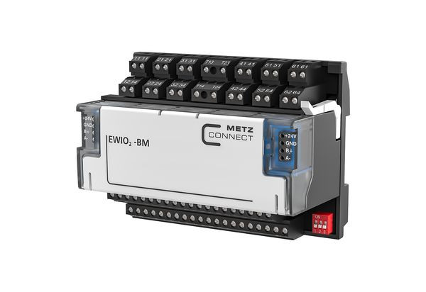 Das EWIO, 2-BM ist je nach Konfiguration ein kompakter Modbus- bzw. BACnet Server, der digitale und analoge Signale aus der Sensor- und Aktorebene mit einem Modbus TCP bzw. BACnet/IP Netzwerk verbindet. Mit einem Modbus oder BACnet Client lassen sich unterschiedliche Aufgaben in der Gebäude- und Industrieautomatisierung realisieren. Über die im Webinterface integrierte grafische Programmieroberfläche "Node-RED" und den zahlreichen digitalen und analogen I/Os können einfache Funktionen und Steuerungsaufgaben in der Gebäude- oder Industrieautomatisierung erstellt und visualisiert werden. Zwei Ethernet-Ports mit Daisy Chain Funktion sind für die Anbindung an das LAN-Netzwerk und Verkettung weiterer Ethernet-I/O Geräte vorhanden. Die Parametrierung, Konfiguration und Inbetriebnahme des Systems erfolgt über einen plattformunabhängigen Webbrowser. Für die Erweiterung der Sensor-/Aktorebene können MR-I/O Erweiterungsmodule per Brückenstecker plug & play und per Verdrahtung an einer zweiten Schnittstelle des EWIO2-BM, Modbus RTU Geräte angeschlossen werden. Eine integrierte µSD-Speicherkarte erweitert den Funktionsumfang des EWIO2-BM für das Speichern der Einstellungen, Daten und Anwendungen.