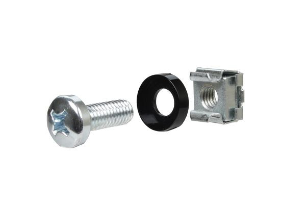 Passend für Standard-Datenschränke, Befestigungsset bestehend aus:, 8 x Linsenkopfschrauben M6x16, 8 x Käfigmuttern M6, 8 x Kunststoffscheiben