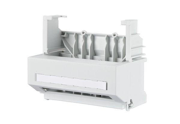 Tragschienenadapter zur Montage von 6fach-Verteilermodulen 1HE in unterschiedliche Verteilersysteme mit einer Tragschiene (TH35), Passende 6-fach Module: C6, Amodul 6 Port, E-DAT C6A 6 Port, E-DAT modul 6 Port, E-DAT C6 6 Port, OpDAT 6M