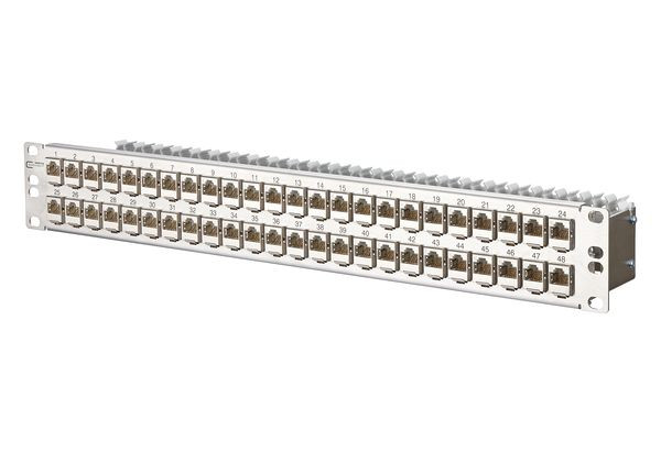 | Kurzbeschreibung | E-DAT modul 48x8(8) 1,5HE Patchfeld Cat.6A, Edelstahl |