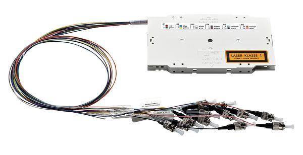 Vorkonfektionierte Spleißkassette bestückt mit 12 Pigtails mit ST-Steckern, geeignet für den Einbau in folgende LWL-Patchfelder: OpDAT fix, OpDAT slide, OpDAT PF und OpDAT PA, Standardspleißkassette (154,50 x 92 x 10 mm) bestückt mit Crimpspleißhalter und Deckel, 12 Kompaktader-Pigtails eingelegt und abgesetzt, Pigtails farbig sortiert nach IEC 60304, Primär- und Sekundärcoating gleichgefärbt, mit Prüfprotokoll, Einfügedämpfung und Rückflussdämpfung zu 100 % geprüft, Länge der Pigtails ab Kassette abgestuft zwischen 80 und 90 cm, Variante: mit Fasertyp OM3