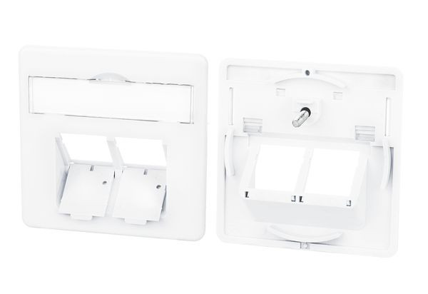 2 Port, zur Erweiterung von UP0-Anschlussdosen zu UPk-Anschlussdosen, passend für E-DAT C6, A, E-DAT C6 und E-DAT designOberfläche glänzend, mit Sichtfenster für beiliegende Beschriftungseinlage, Beschriftungsbogen 209 x 294 mm siehe Zubehör, integrierte Staubschutzklappen (auch farbig erhältlich) siehe Zubehör, Farben verkehrsweiß (RAL 9016), reinweiß (RAL 9010) oder perlweiß (RAL 1013), Varianten: verkehrsweiß, reinweiß, perlweiß