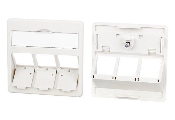 3 Port, zur Erweiterung von UP0-Anschlussdosen zu UPk-Anschlussdosen, passend für alle modularen Abschlussdosen, Oberfläche matt, mit Sichtfenster für beiliegende Beschriftungseinlage, Beschriftungsbogen 209 x 294 mm siehe Zubehör, integrierte Staubschutzklappen (auch farbig erhältlich) siehe Zubehör, Farben verkehrsweiß (RAL 9016), reinweiß (RAL 9010) oder perlweiß (RAL 1013), Varianten: verkehrsweiß, reinweiß, perlweiß