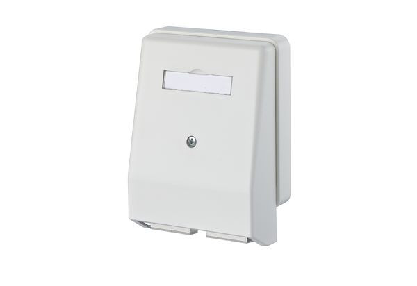 Glasfaser-Anschlusseinheit zur Kanal-/Aufputzmontage mit LWL Kupplungen, Bestückt mit 2 SC-D MM Kupplungen, Einhaltung eines Biegeradius von ca. 30 mm durch integriertes Kabelreservoir, Steckrichtung 10° nach unten geneigt, Zugentlastung mit Kabelbinder möglich, mit Sichtfenster für beiliegende Beschriftungseinlage, geeignet für vorkonfektionierte Kabel bzw. Stecker-Vor-Ort-Konfektionierung, Geeignet für Mini-Breakout Kabel, Farbe der Abdeckteile reinweiß RAL 9010, Varianten: 2 LC-D, 2 SC-D, 4 ST