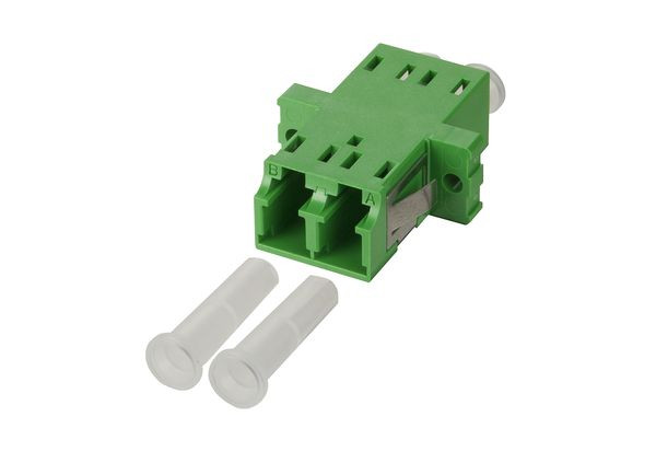 LC-Duplex-Kupplung aus Kunststoff, Bauform SC simplex mit Metall-Clip, geschlitzte Führungshülsen aus Keramik für Singlemode- und Multimode-Anwendungen, mit transparenten Staubschutzkappen für bessere Sichtbarkeit beim Rotlicht-Test, hohe Materialstabilität, Oberflächenqualität und Lebensdauer, Lebensdauer min. 1000 Steckzyklen bei Führungshülse aus Keramik, Schrauben und Muttern im Lieferumfang enthalten, Varianten: blau (OS2), grün (OS2 APC), lindgrün (OM5), violett (OM4), aqua (OM3), jeweils einzeln verpackt oder zu 50 Stück