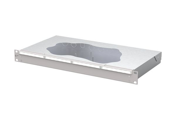 19 Zoll,1HE Patchfeld zum Festeinbau, Blind Frontplatte, Frontplatte pulverbeschichtet glatt in grau RAL 7035, Werkzeugloses Öffnen des Deckels, Mehrere Kabeleingangsmöglichkeiten rückseitig: 6xM20; 2xM25; 2xVIK-Einbauausschnitte, Vorbereitet für den Einbau von vorkonfektionierten Leitungen