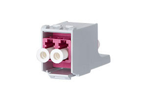 LC-Duplex-Kupplungen mit Adapter, passend zu modul Applikationen, Führungshülse aus Keramik geschlitzt für Singlemode- und Multimode-Anwendungen, eignen sich bestens für die Realisierung von Fiber-to-the-desk-Lösungen, Lebensdauer min. 1000 Steckzyklen, Varianten: blau (OS2), lindgrün (OM5), violett (OM4), aqua (OM3), beige (MM) oder grün (SM APC)