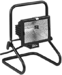 Für Halogen-Glühlampen (QT-DE 12), Schutzklasse I, IP55 (Zul.IP44), Leichte aus Aluminium-Druckguss, Polyesterpulverbeschichtet, achsensymmetrischer Aluminiumreflektor Struktur geglänzt, temperaturwechselbeständiges Sicherheitsglas, Silikondichtung, Edelstahlspannverschluss, Rahmen klappbar, Spezial-Rohrgestell mit 2 Knebelschrauben, Neigungsbereich 120°, mit 4m Gummi-Zuleitung (H07RN-F3G1, 5 und Schutzkontakt-Stecker, serienmäßig mit Lampe