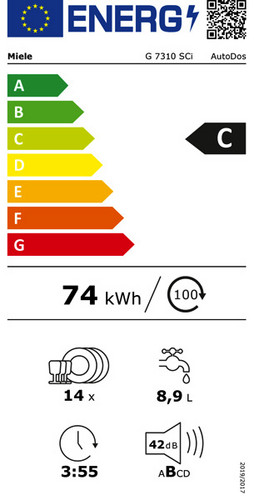 | Energieeffizienzklasse Geschirrspüler (2019/2017/EU) | C |