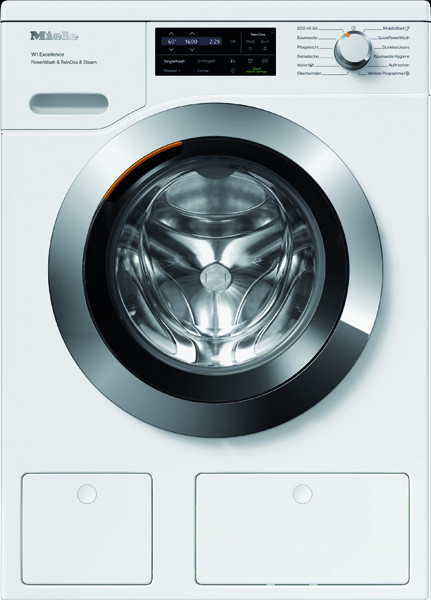 ComfortSensor Display, Startvorwahl bis zu 24 Std., Programmablauf-Anzeige, Restzeitanzeige, Summer, PowerWash, TwinDos, CapDosing, SteamCare, Mengenautomatik, Schaumregulierung, Wassermengenzähler, AddLoad (Nachlegen nach Programmstart), Optionen: SingleWash, Kurz, Einweichen, Vorwäsche, Wasser plus, Zusätzlicher Spülgang, Vorbügeln mit Dampf, AllergoWash; Niedrigtemperaturwaschen "kalt" und "20°C", Waschprogramme: QuickPowerWash, Automatic plus, Baumwolle, Pflegeleicht, Feinwäsche, Oberhemden, Seide (Handwäsche), Wolle (Handwäsche), Express 20, Dunkles/Jeans, Outdoor, Imprägnieren, Sportwäsche, Federbetten, Kopfkissen, Daunen, Gardinen, Baumwolle Hygiene, Auffrischen (Dampf), Finish Dampf, Maschine reinigen, Neue Textilien, Nur Spülen/Stärken, Pumpen/Schleudern, ECO 40-60; LED-Trommelbeleuchtung, AutoClean Einspülkasten, Waterproof-System, Kindersicherung, PIN-Code Verriegelung, optische Schnittstelle, Miele@home, Tür Chrom, ProfiEco Motor, säulenfähig