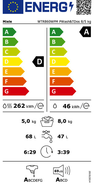 | Energieeffizienzklasse kompletter Wasch-/Trockenzyklus (2019/2014/EU) | D |