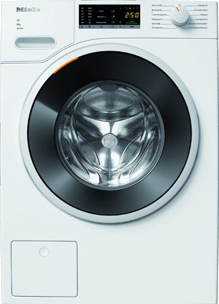 EasyControl Display mit Startvorwahl bis zu 24 Std. und Restzeitanzeige, CapDosing, Mengenautomatik, Schaumregulierung, Wassermengenzähler, AddLoad (Nachlegen nach Programmstart), Optionen: Kurz, Einweichen, Wasser plus, zusätzlicher Spülgang; Niedrigtemperaturwaschen ("Kalt" und 20°C), Waschprogramme: Baumwolle, Baumwolle mit Vorwäsche, Pflegeleicht, Feinwäsche, Wolle (Handwäsche), Express 20, Dunkles/Jeans, Outdoor, Imprägnieren, Nur Spülen/Stärken, Pumpen/Schleudern, ECO 40-60; AutoClean Einspülkasten, Waterproof-System, PIN-Code Verriegelung, optische Schnittstelle, Tür Obsidianschwarz mit weißem Ring, ProfiEco Motor, säulenfähig
